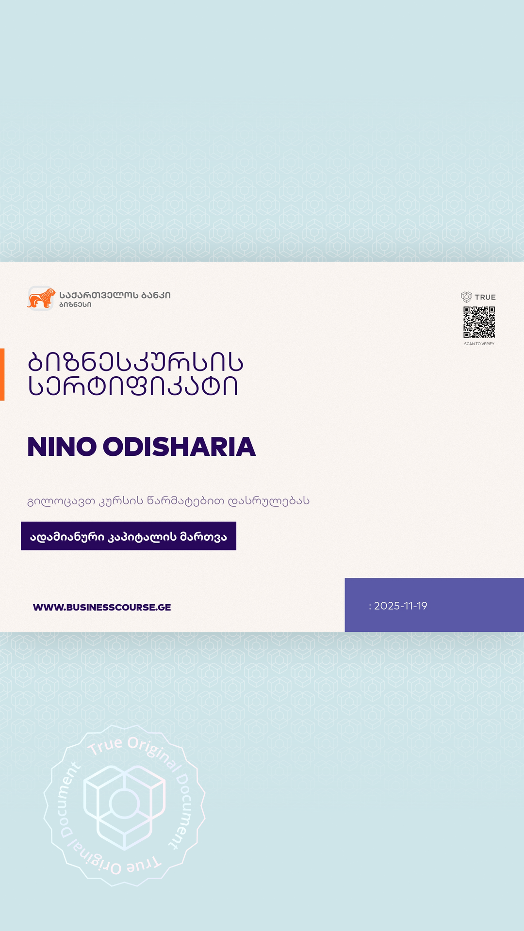 ბიზნესკურსის სერტიფიკატი თქვენი წარმატების გზაზე კიდევ ერთი საინტერესო გამოცდილებაა, რომელიც საქართველოს ბანკთან ერთად გაიზიარეთ.
